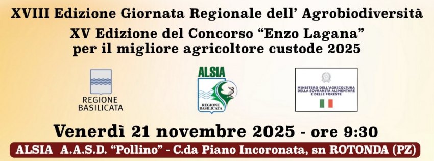 XVIII Giornata dell’Agrobiodiversità – Basilicata 2025 Il 21 novembre 2025, presso l’ALSIA – Azienda Agricola Sperimentale Dimostrativa “Pollino” di Rotonda (PZ), si terrà la XVIII edizione della Giornata dell’Agrobiodiversità, dedicata quest’anno al tema della Rete Nazionale dell’Agrobiodiversità e degli Agricoltori Custodi.